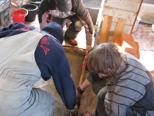 Судя по всему из четырёх практикантов я там "самый начинающий". Первый раз, под руководством знающего человека, взял в руки мастерок.