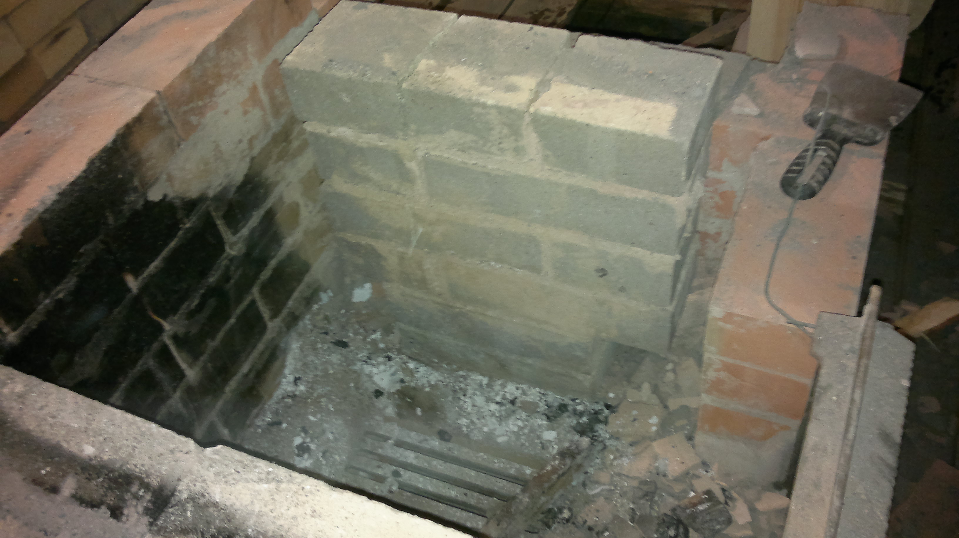 Распушка мне показалась маловата. всего полкирпича + огнеупорный на ребро.