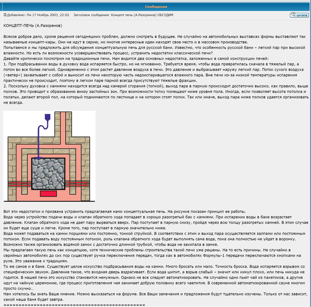 Рождение "Новпар" - заимствование концепт печи Разоренова, рождение Руссауна - печь построенная И.Спицыным в МО.