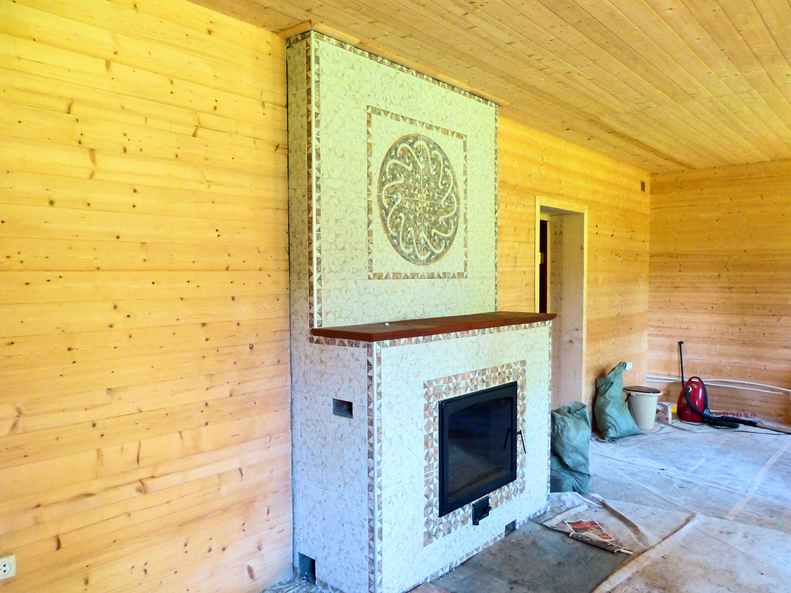 2. Переложить камин в каминопечь или в печь. Было бы классно, но жалко ломать готовый, обложенный керамогранитной плиткой камин.