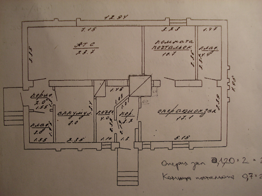 Передо мной (и вами) план помещения ОПС д.Лосичи. Если в масштабе смотреть, то бОльшая печь имеет размеры 1300х1300 мм, что прим. соответствует размеру 5х5 кирп. Хотелось бы построить там теплоёмкую печь с толщиной стенок 120 мм, СДГ, футерованный топливник, 2-х колпаковую. Имею небольшой опыт складывания ОИК-ов, которые этой зимой себя очень хорошо показали. А вот самому сконструировать - беда... Поэтому и пишу тут.