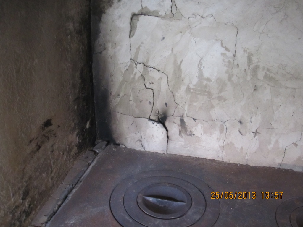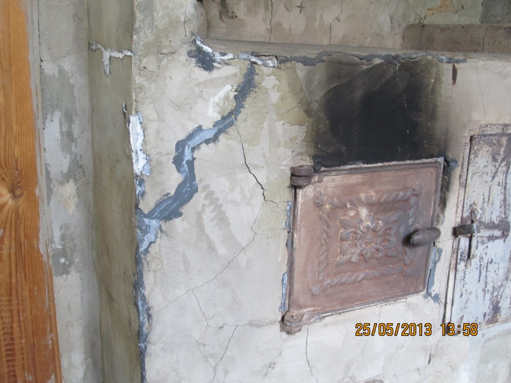 1. В районе топки штукатурка практически не держится.