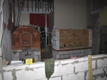 Продолжаем выпилили проем в тандыре для того чтоб лепешечнику было удобно работать.(тандыр глиняный) обкладываем. мангал то же подрос. Сложности в том что работать приходится ночью после 23 часов. Поскольку все заведения вокруг уже давно работают и шуметь днем не разрешают.