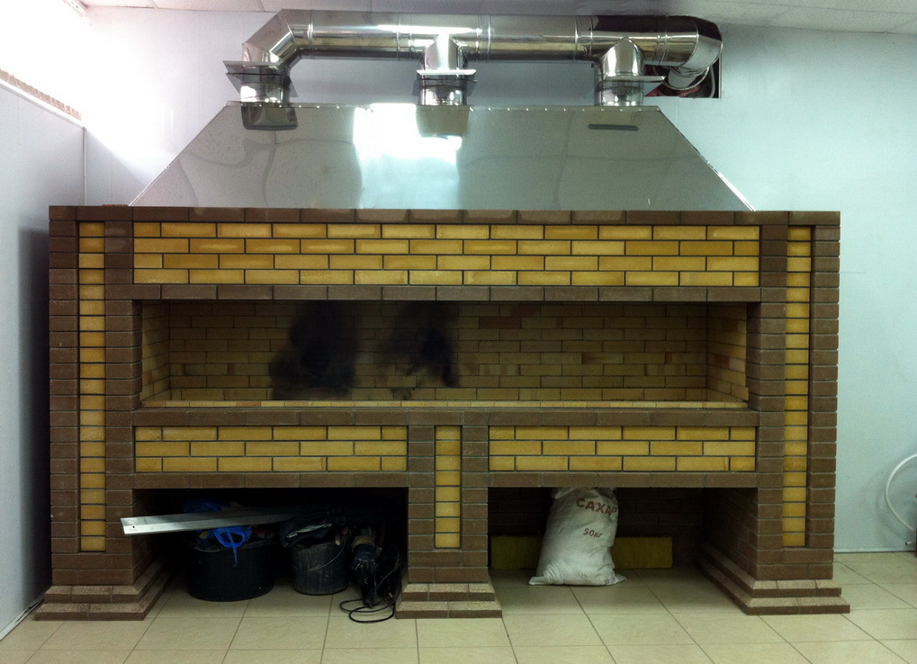 Взялись возвести мангал и тандыр в крупном развлекательном комплексе .Изначально предполагалась лицевая кладка в шоколадном кирпиче но из за ограничения по весу делаем облегченную конструкцию из сибита под отделку плиткой.( третий этаж).