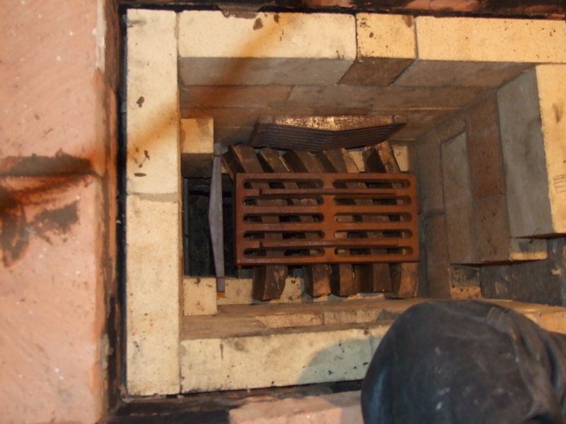 От верхней шамотной решетки делается отступ на высоту кирпича, а на него уже кладем всю весовую нагрузку каменки, тем самым оставив решетку работать только на топочный процесс (разделение весовой и тепловой нагрузки).