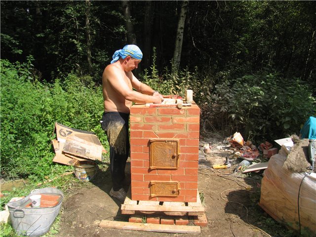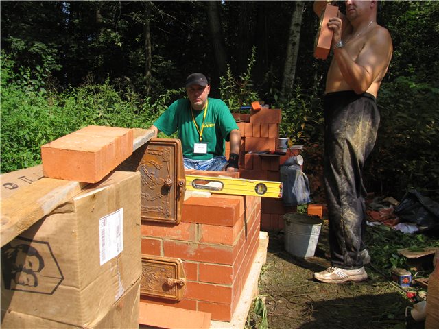 По любезному приглашению двух молодцЕв из ларца, стоящих во главе известной в банных кругах фирмы, буду класть на берегу Черноголовского озера в Ногинске на Фестивале банную печь. Тобишь завтра приступаю. Место выделено в красивом месте. Крапива в рост)))) Печь будет прямоточка, прям под открытым небом.Прямоточки не клал ни когда, ну да ладно. Разберусь по месту. Но будет всё по взрослому, футеровка, дверки на спицах, только что не армированная. Задача печи будет нагреть каменку до свечения. Поскольку высохнуть она не успеет, возможно первая топка в полный рост, станет для нее последней. Я сильно удивлюсь если будет иначе. По мере сил буду фотографировать и выложу здесь. Если кому то будет интересно.........)))))