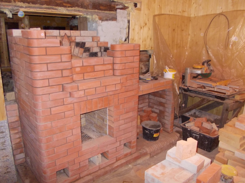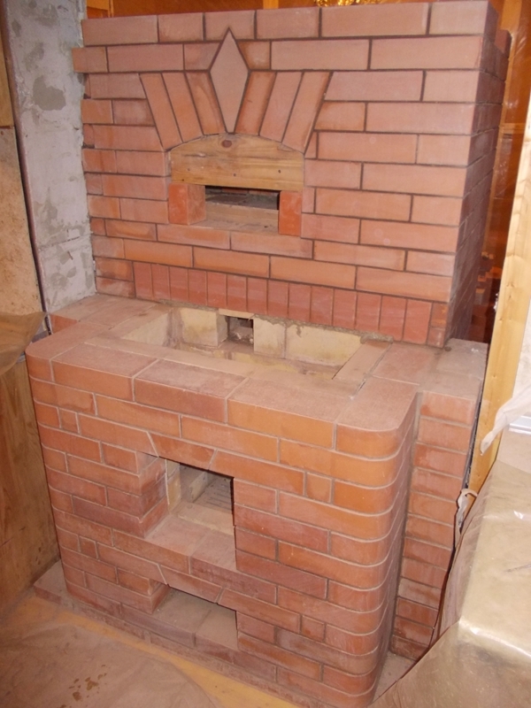 На этой недели продолжили работу ( ждали панно Северного Оленя из Ками) . Кладка продвигается не очень быстро так как приходится подгонять и стыковать старый кирпич Терку с новым Лоде перепад 2 мм на ряд+ наступившие в спб холода под Волховым с утра - 15 заставили перетаскивать станок в дом для запила .Кипятильник и тепловая пушка не справляются с морозом. На кухне перекрыли хк клиновой перемычкой также поставили балку в районе шестка разъединили шамот от красного ( Щека-в русских печах ). Бацулин подсказал что это самое слабое место в стыковке плиты и Хк часто трещит и требует ремонта через 3-5 лет.В принципе об говорили и ребята в Суздале( посмотрим что будет дальше).В комнате вышли в район хайла -горелки размер ( 41 см на 8 см) перекрыли балками плиты ш-96 ставить боязно трещат В место вв образовались душники в них будет вставлена нержа между камерой и каналами по сути это для меня эксперимент