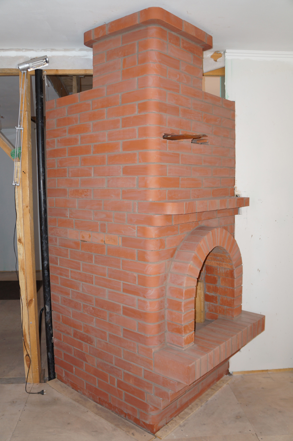 Но данная печь включает ещё отопительную плиту, которая мне была не нужна, а вот дополнительная излучающая поверхность лишней не будет. Поэтому проект был переработан. Плиту убрал и печь стала только отопительной. Кладку выполнил почти по проекту, за исключением конструкции перекрыш (всё равно не так пришлось делать).