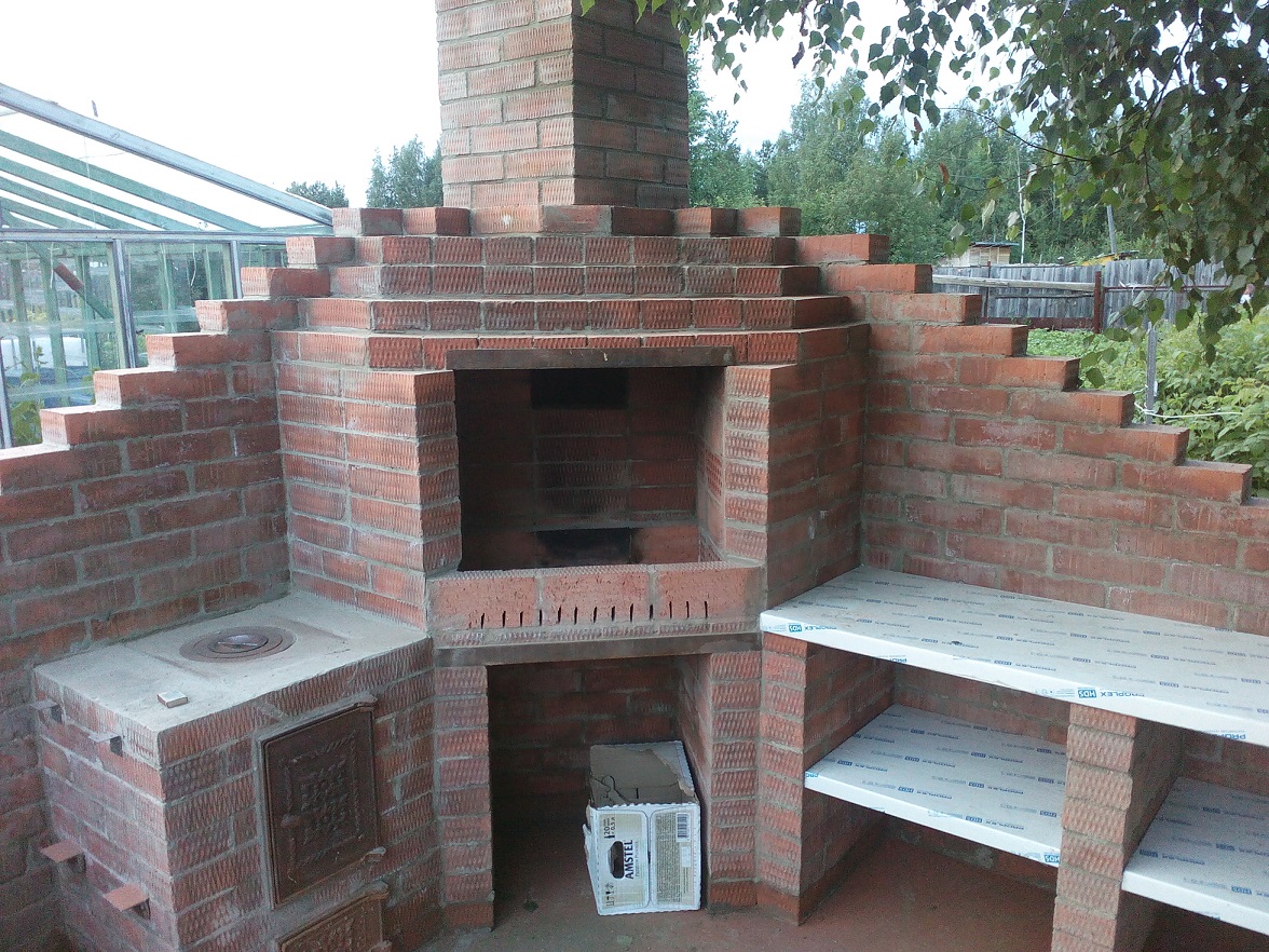 Отвечу всем по не многу делалось все в первый раз без чертежей и раскладок, все из головы, все действительно сделано на цемент кроме естественно казана где внутри есть полость выложенная шамотом на шамотную глину. Делалась так на выбор хозяина "так дешевле" моя работа обошлась в 25т.р. скрывать не чего. Оценкой очень доволен так как ложу только печи это первый опыт та ко-го рода!