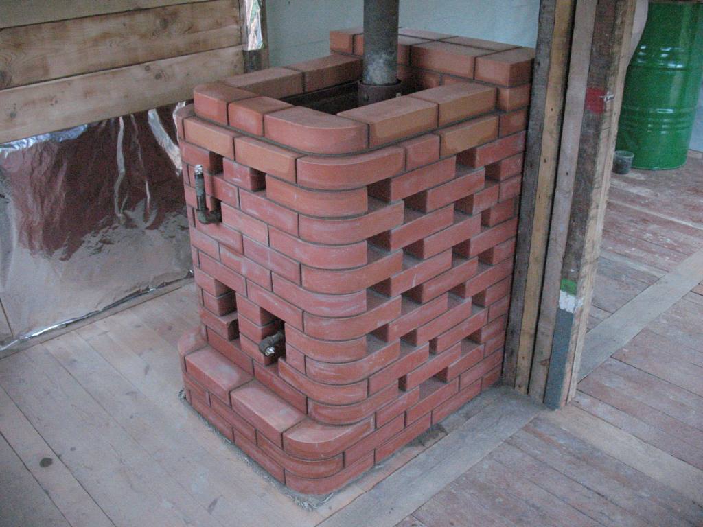 Отцу на даче, в баню поставил железку и обложил ее кирпичом.