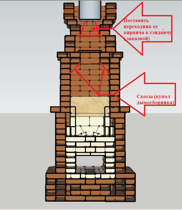 2 не совсем понял по рекомендации изготовления двух арок. Т.е. Вы предлагаете сделать всю среднюю часть камина из шамота и перевязать кладку передней стенки с аркой? Я правильно понял? Зачем тогда ещё одна арка, как я понимаю, внутри топки?