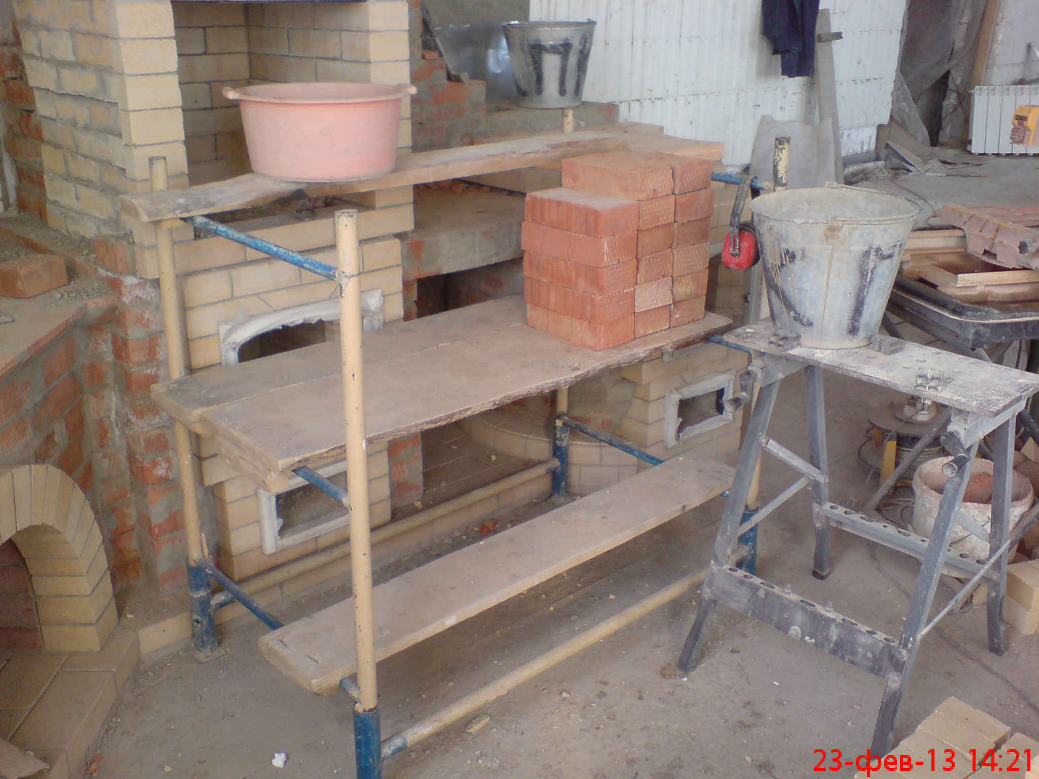 короче мой опыт с самодельными лесами интересный, но не очент практичный, хотя на них печь можно было ставить