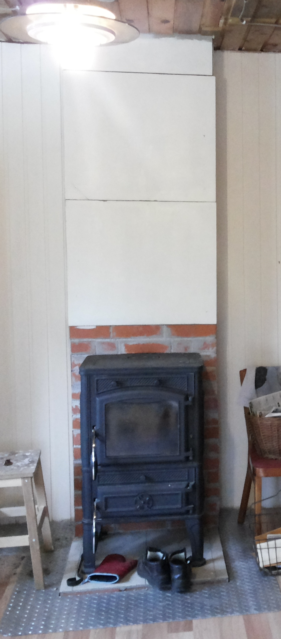 Есть вот такая печка. Сверху короб из вермикулита. Вопрос чем его можно красиво отделать? Материал очень хрупкий... В данный момент сверху просто покрашен краской для стен. Можно ли его штукатурить или приклеить сверху облицовочную плитку?
