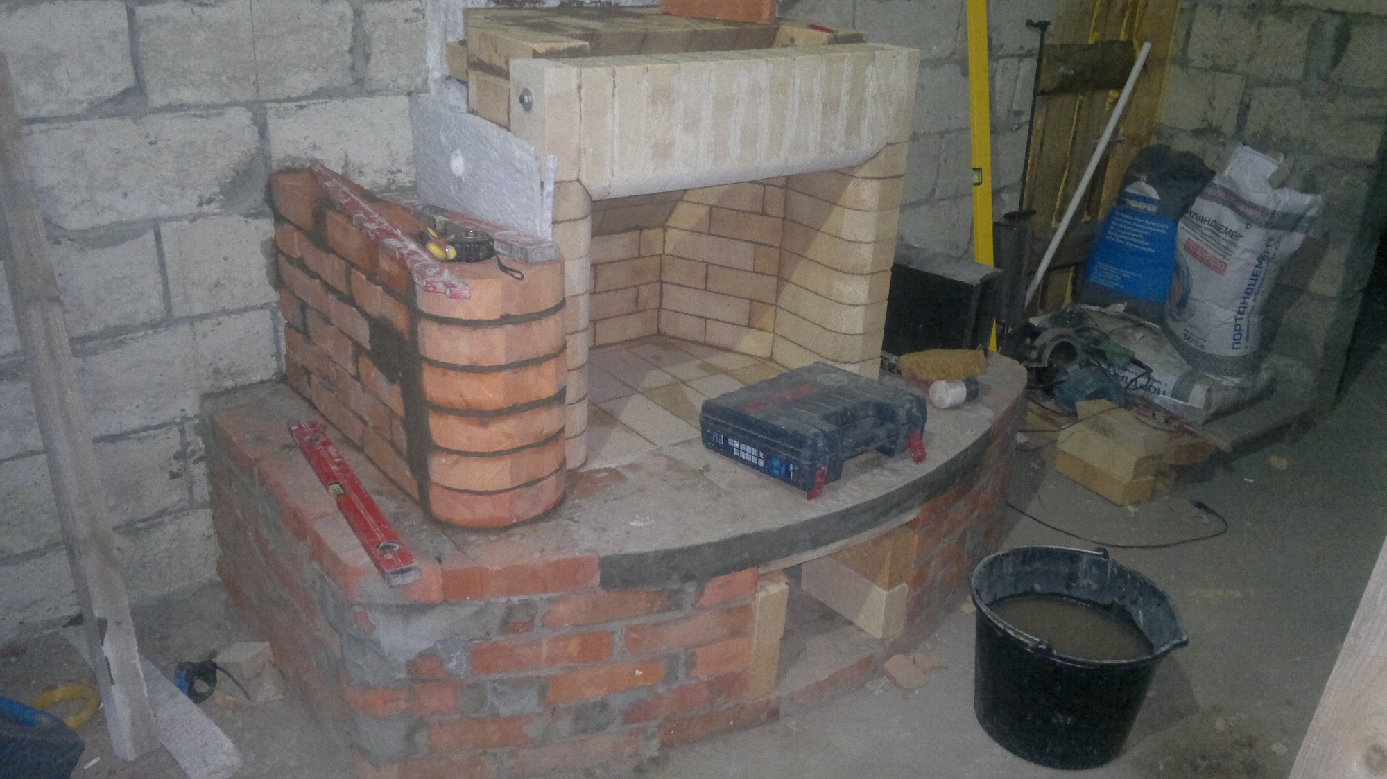 Во вторник приступили к кладке камина... Камин под дальнейшую отделку поэтому просьба не критиковать внешнюю кладку.... С ней не заморачивались... от внутренней она изолирована. фото проекта прилагаю... за день подняли до пода камина и выточили кирпич