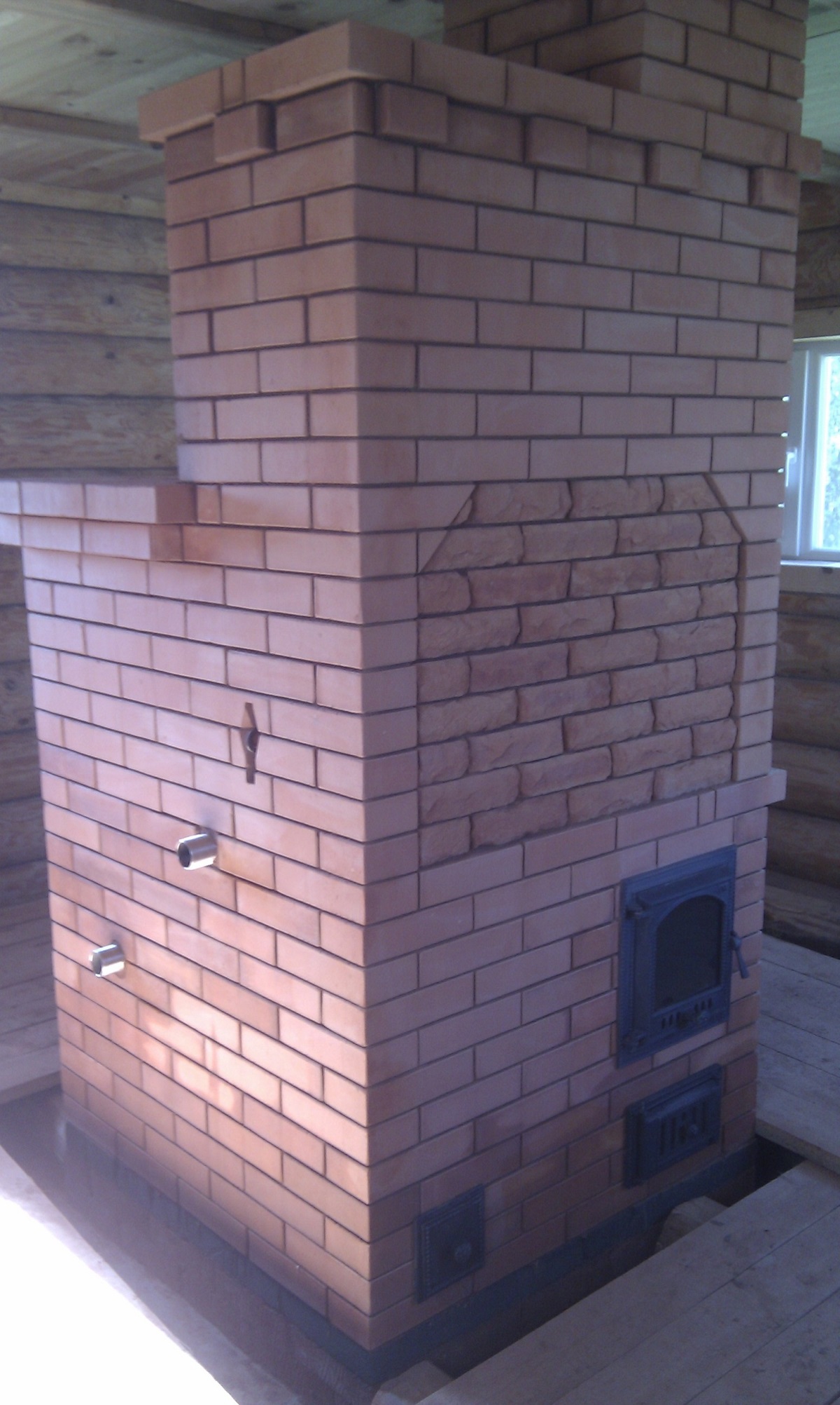 Это всего лишь проект... На самом деле шамотом закрывал с двух сторон( дольше держит тепло и не зарастает сажей) .