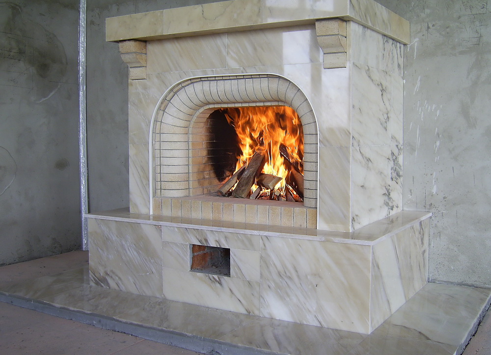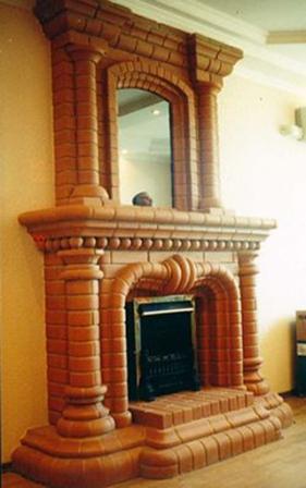 Открытый камин из резного кирпича. Пока еще до конца не высох.