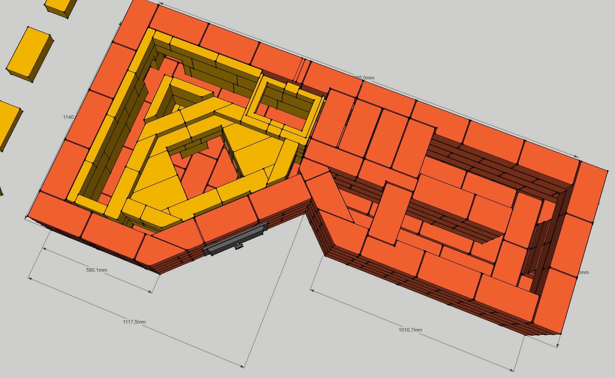 Проект представленный в первом сообщении забраковал. Сейчас пытаюсь построить конструкцию, которая будет лучше вписываться в помещение. К сожалению когда готовил фундамент под печь, не учел как она будет смотреться в интерере.