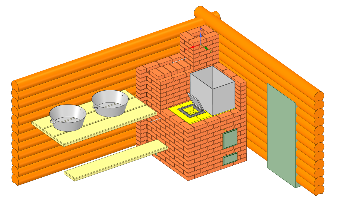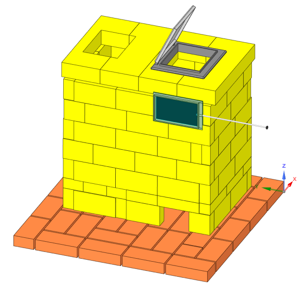 Я реализовал 3D-модель печи, что бы потом можно было пользоваться при кладке. Это моя первая работа подобного рода. Создавал модель я с фотографий и по своему разумению, немного изменив габариты печки.