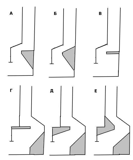 По каминам описания и видео встречал только такие, которые на рисунке ниже обозначены вариантами А, Б и В.