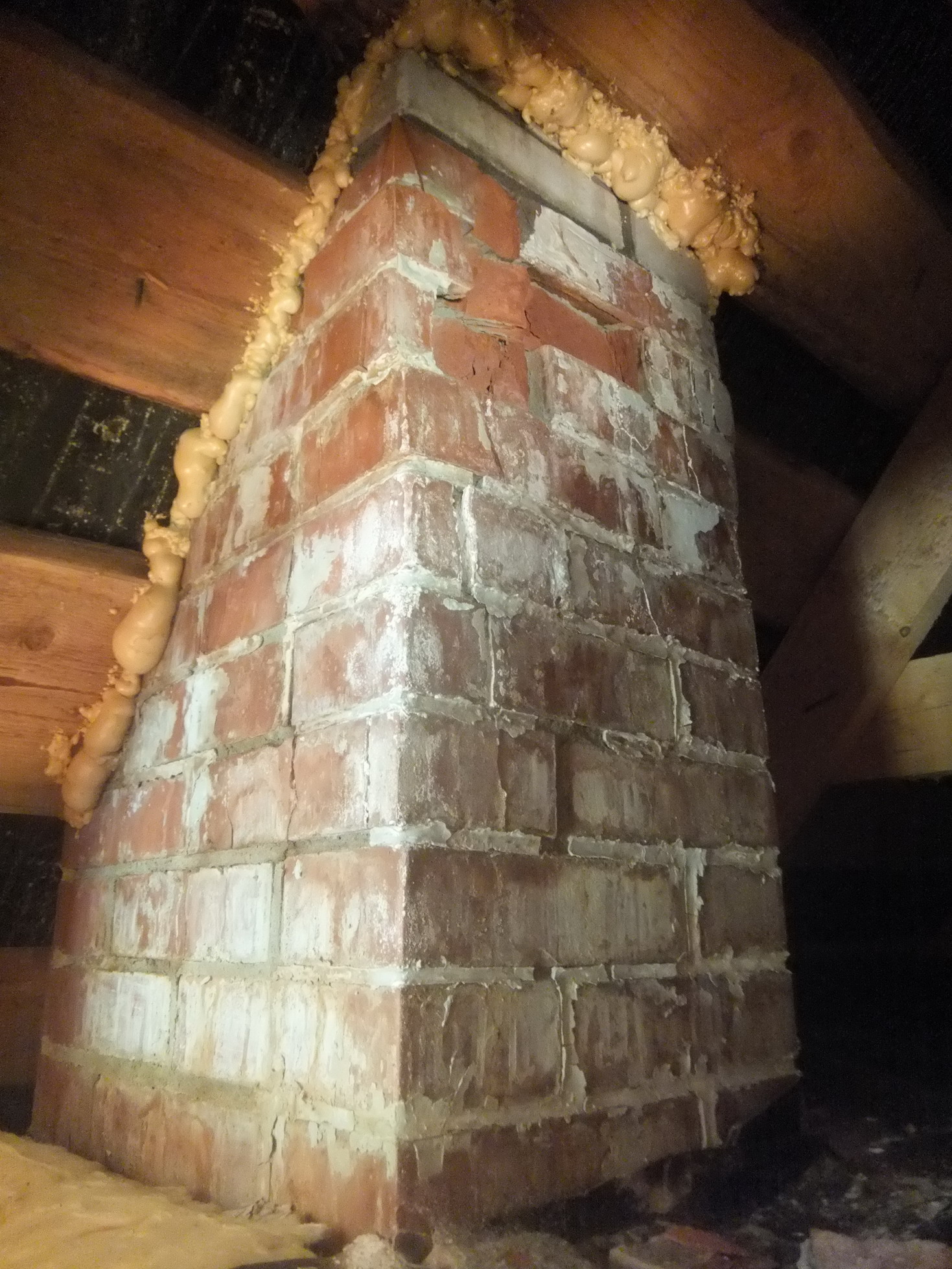 нет там конденсата особого. Не понятно отчего потрескслся кирпич, явно труба в крыше зажата. Кстати дорогущая выдра не спасает от протекания. Сендвич бы поставили и все дела