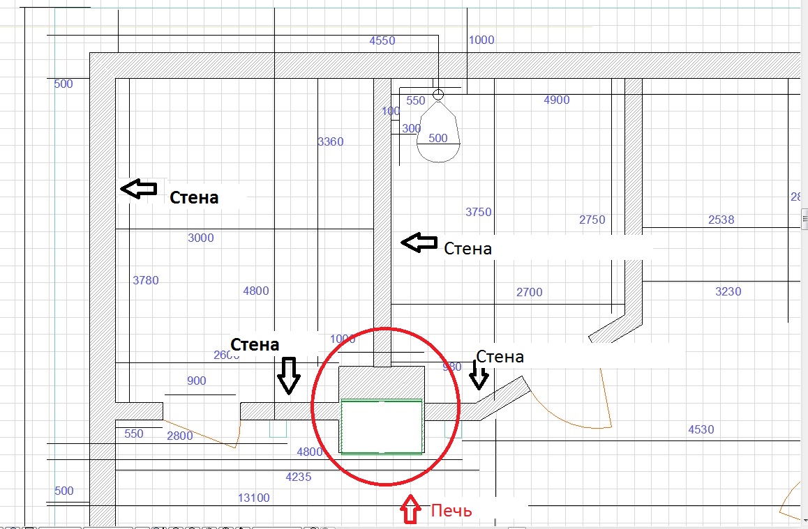 При примыкании печи к стенам теряется полезная площадь печи для обогрева помещения.