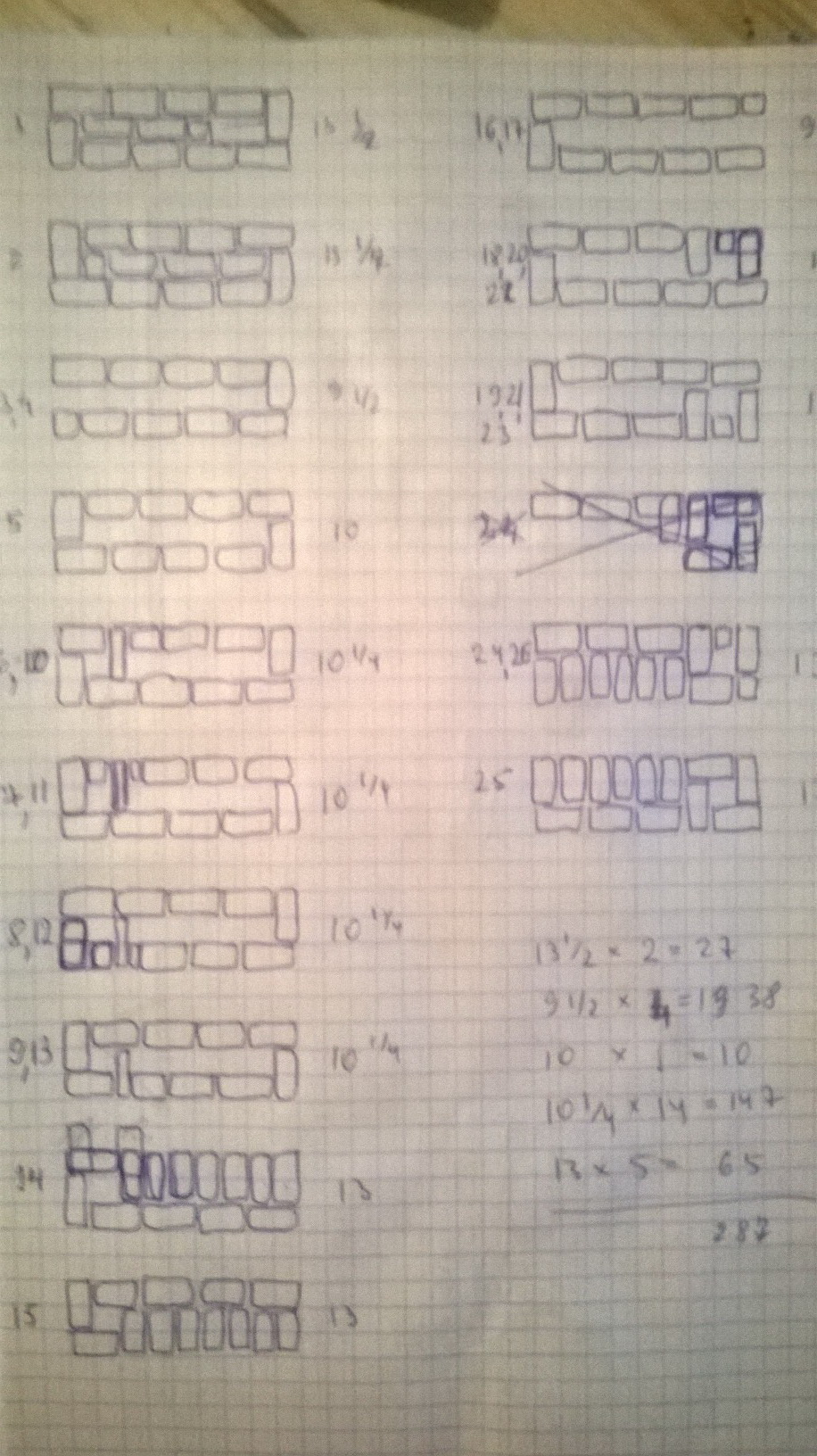 (стал делать раскладку кирпичей с рассечками, очень много пилежки получается, и все равно все швы не перевязываются).