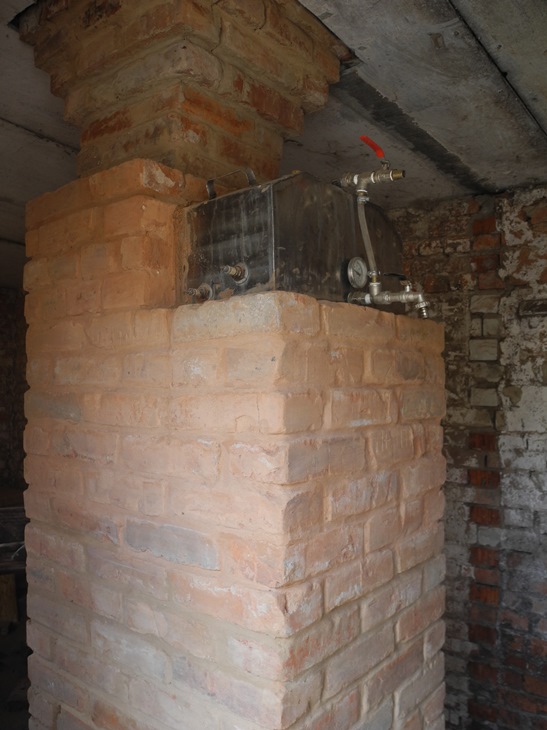 - сзади вмурован водогрейный бак на 30л. Пришлось пожертвовать свой самогонный аппарат. Ну прям тютя в тютю по габаритам, термометр, уровень, краники. Как не отдать? Но у меня еще есть запасной, гыгы.
