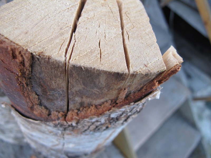 Колол дрова и несколько поленьев получились недоколотыми. Т.е. после удара топором попадает сучок и бревно не раскалывается а дает трещину.