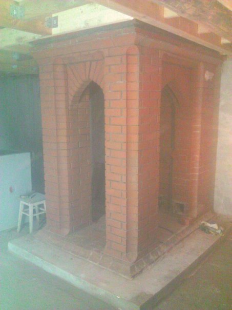 Внутри камина вертикальные пазы 30Х65. Камин не большой, просто напарник уменьшился на 20кг, пока его делали и вся одежда висит , поэтому кажется, что он большой! За счёт радиуса и низкого потолка кажется большим. Либо он реально большой и МНЕ кажется). Русская печь будет иметь разные цвета по группам элементов. Интерьер на этом этаже, тоже не "музей славянского быта" с плазмой размером с мотоцикл. Заказчик доволен! Был рядом каждый день. С родного завода) Поэтому не жалели время...Простым людям лучшее!