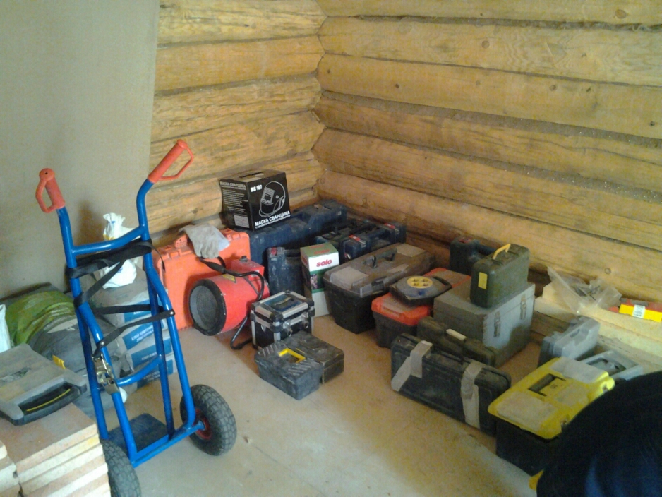 Организация рабочего места это первое, с чего надо начинать. На многих объектах, когда приезжаешь первый раз, чёрт ногу сломит. Так и на этом было. Опилок по колено, доски, обрезки, вата раскидана... День ушёл на то, что бы всё привести в порядок и сделать подобие мастерской, что бы каждый инструмент был под рукой. Очень удобно обрисовывать инструмент на стендах и подписывать каждое место. Тогда, в конце рабочего дня сразу видно, какой инструмент не на месте, а где-то валяется. Всем советую. Не пожалеете!