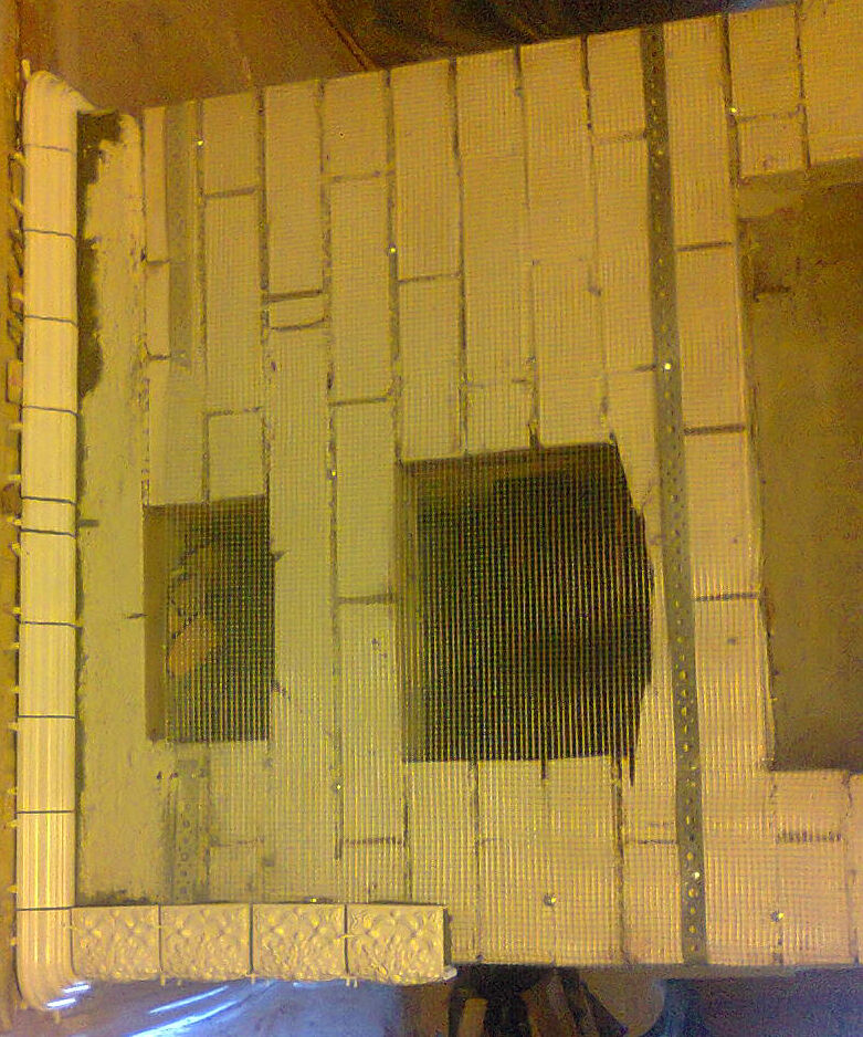 Вот как то подвернулся ремонтик. Сносить и перестраивать клиент не захотел. Ремонтируй и все. Жаль не сделал фото до начала. Не сложно догадаться что там было. Плюс обложена искусств камнем, который почти весь отвалился. Первое фото это перебранки топливные и поставлена новая дверь и футеровка.