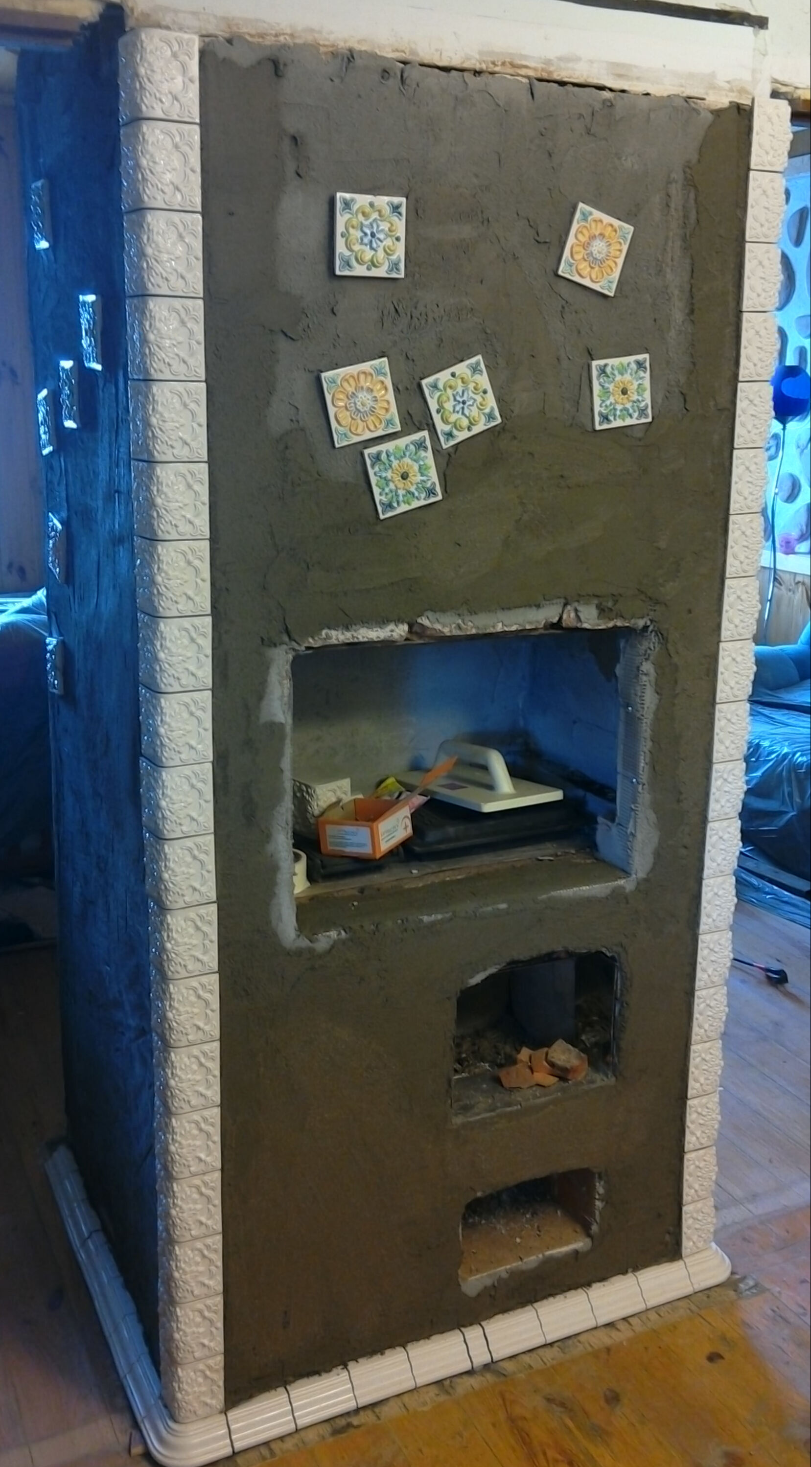 Подкупил изразцов. Всю печурку стянул сеткой и лентой что б не развалилася.