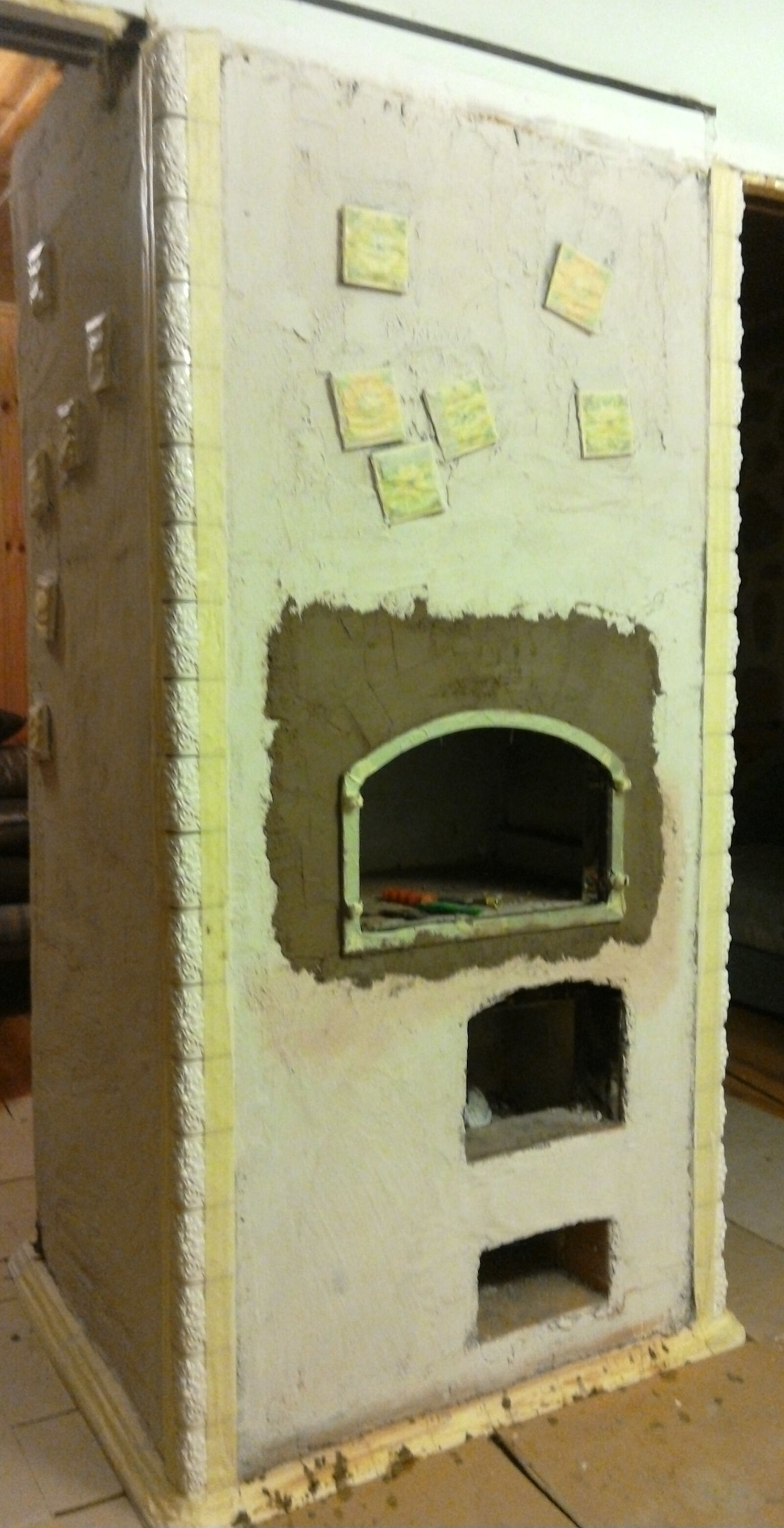 Нанёс нижний слой штукатурки и наклеил изразцы