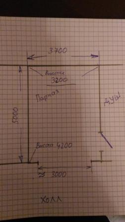 Дано:баня-сруб 200 квадратов. Бревно 280мм. Парилка 5 на 3,7м ,высота со стороны холла 4,2м ,с дальней стороны 3,2 ,пропил в стене под печь между холлом и парной 3м.