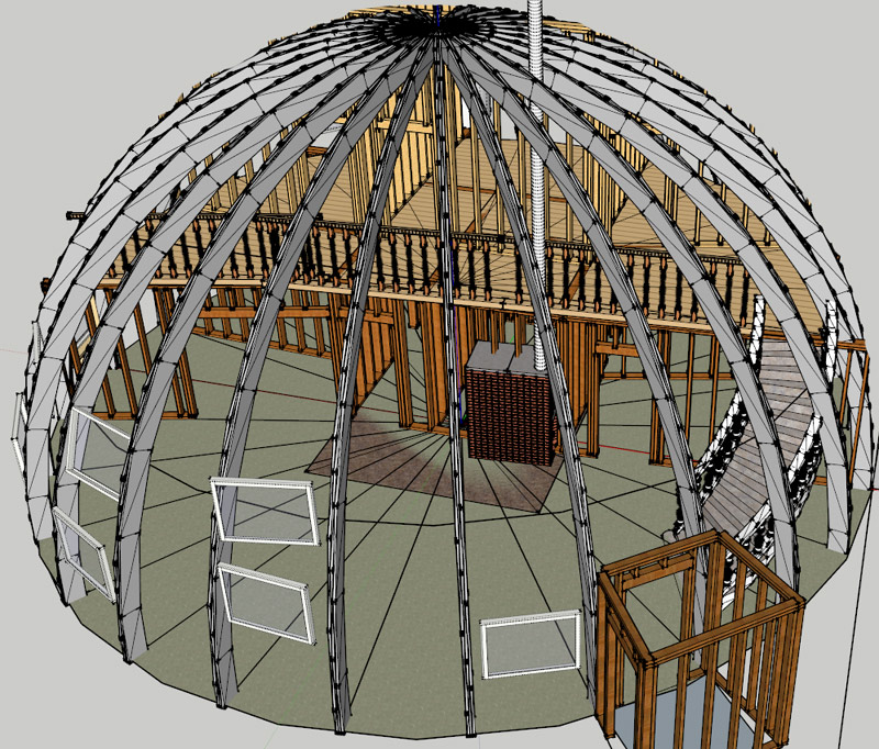 рассчитал, при моём утеплителе для этого купольного дома необходима печь 4.7 киловатт, был у человека в гостях с там же параметром дома, стоит аналогичная печь почти, очень тепло......
