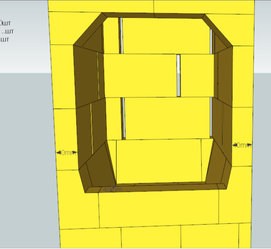 Стенки топливника в 40 мм в данном случае вполне оправданы. Охлаждение кирпича будет происходить за счет ВВ с тыльной стороны. Конвекция вдоль облицовки и стенкой топки увеличит теплопередачу на облицовку. Облицовка в районе топки быстрее прогреется. Весовая нагрузка так же вполне оправдана, поскольку в пересчете на кг/см2 вес намного меньше допустимого. Вот разрушение кирпича под вопросом, но это можно конструктивно разгрузить, если практика эксплуатации печи это докажет.
