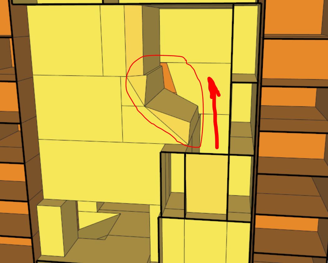 Суперхитрый переход от лещадки к перекрытию красным с уплотнением из (догадываюсь) базальта,т.е. полное отсутствие газоплотности канала.