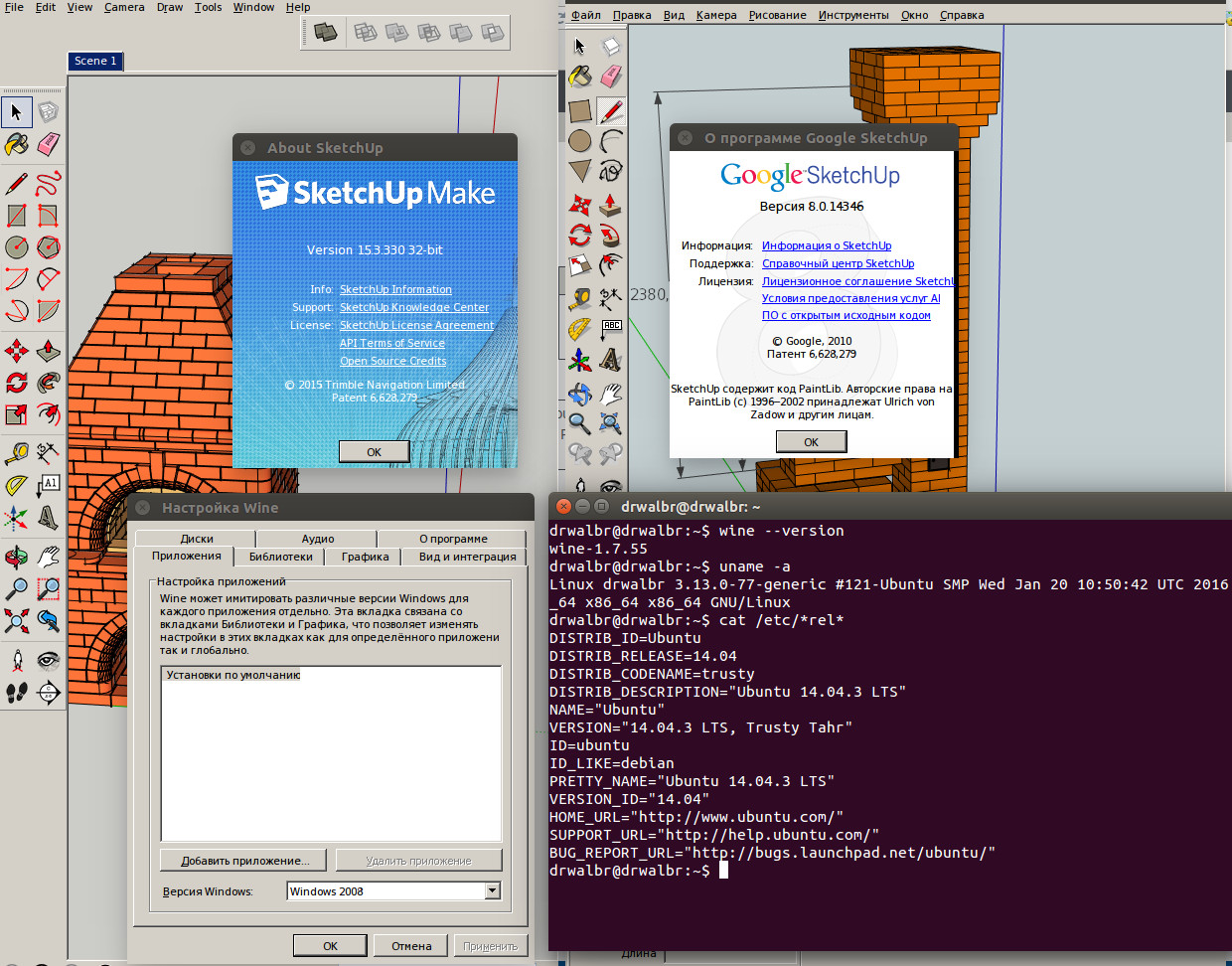 Простите за офтоп. Владимир, а откуда такое пристрастие к восьмой версии ScetcрUp? На XP более высокие версии не идут? Можно вообще отказаться от Windows. Работает и восьмая и пятнадцатая версии под Ubuntu Linux 14.04. Все подробности на скриншоте. Ваш проект открыт в восьмой версии простите за плагиат ;-)))