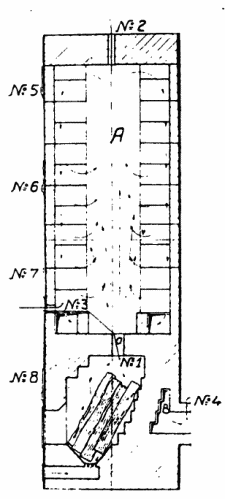 | Противореча самому себе проф. В.Е. Грум-Гржимайло устраивает топливник минимальных размеров, Весь об"ем которого заполняется дровами, не оставляя достаточного об"ема для сжигания горючих газовой выпускает газы для сжигания в холодильник. По отношению к топне, верхняя над топкой часть печи с сильно развитой поверхностью, предназначается для охлаждения газов. Она представляет собою холодильник. |