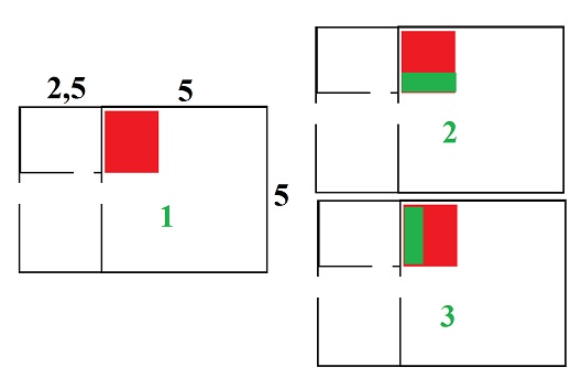 есть дом 5*5 + пристройка кухня 2,5*5. старая печка (указана красным) разбирается и из этого же кирпича собирается новая (указана зеленым). стены сноситься не будут. нужна отопительная печь которая будет хорошо обогревать помещение до зимних морозов - зимой жить там никто не собирается. делать буду сам, насмотрел