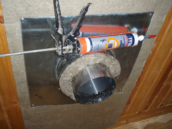 Строители, которые делали баню и устанавливали дымоход не удосужились даже вытащить транспортировочные оцинкованные кольца- которые ялвляются температурными мостиками от внутренней трубы к внешней.